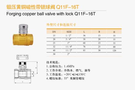 鍛壓黃銅磁性帶鎖球閥 Q11F-16T 的技術(shù)規(guī)范可歸納如下: