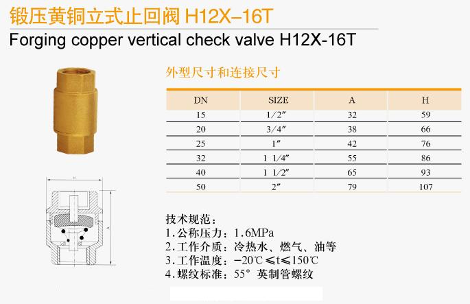 鍛壓黃銅立式止回閥H12X-16T技術(shù)規(guī)范:
