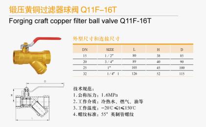鍛壓黃銅過濾器球閥Q11F-16T技術規(guī)范: